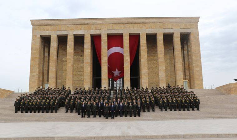 Kara Harp Okulu Komutanı Tümgeneral Gültekin Yaralı başkanlığındaki heyet, Aslanlı Yol'dan yürüyerek Atatürk'ün mozolesine çelenk bırakıp, saygı duruşunda bulundu.