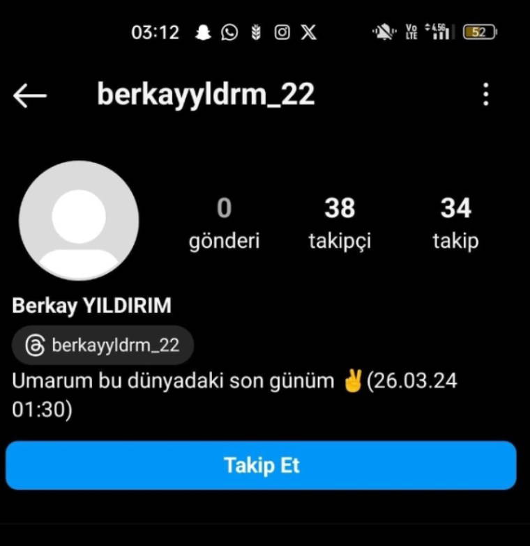 Ayrıca öğrencinin, sosyal medya hesabındaki biyografisine, "Umarım bu dünyadaki son günüm (26.03.2024 01:30)" ifadelerini yazdığı da görüldü.
