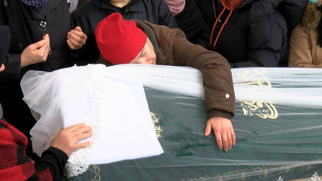 Baba Şener ile anne Dilek Gültay, taziyeleri kabul ederken kızının beyaz duvak örtülen tabutuna sarılan acılı anne Dilek Gültay, gözyaşlarına boğuldu.