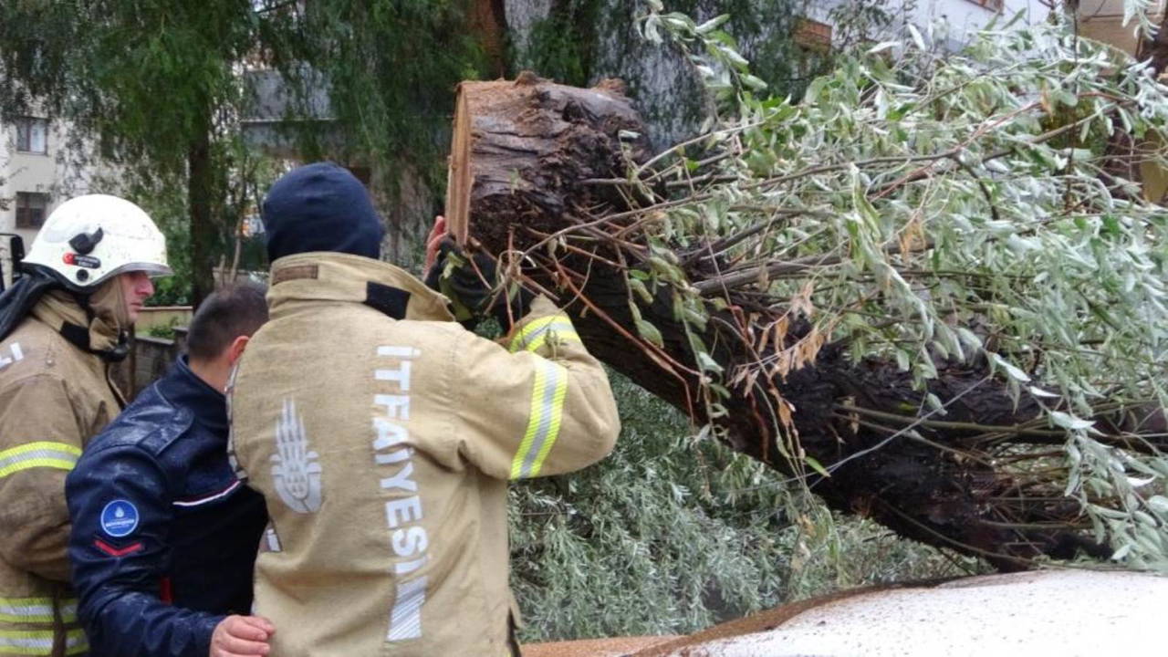 İhbar üzerine olay yerine itfaiye ve polis ekipleri sevk edildi. Polis caddeyi trafiğe kapatırken itfaiye ekipleri otomobil ve yola devrilen ağacı kesti. Ekipler ön cam ve tavanında hasar oluşan otomobili kurtardıktan sonra ağacı parçalara ayırdı.