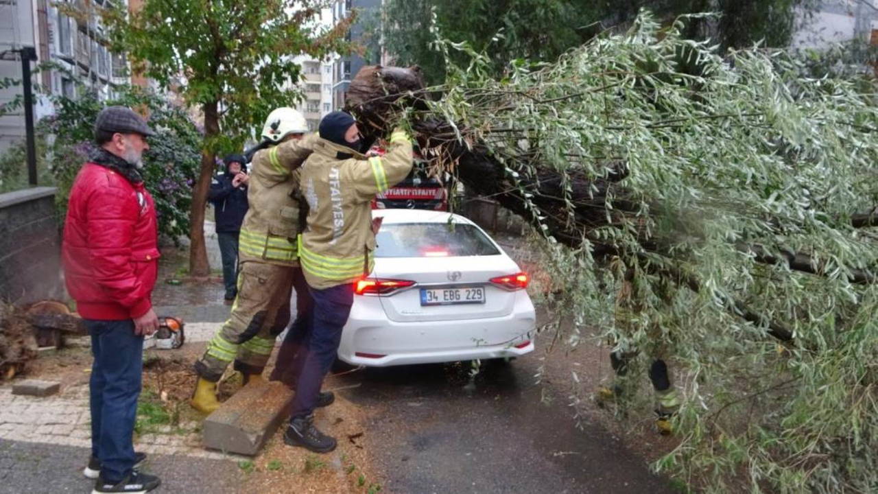 Kartal Çavuşoğlu Mahallesi Orgeneral Tekin Arıburun Caddesi üzerinde park halinde bulunan 34 EBG 229 plakalı otomobilin üzerine ağaç devrildi.