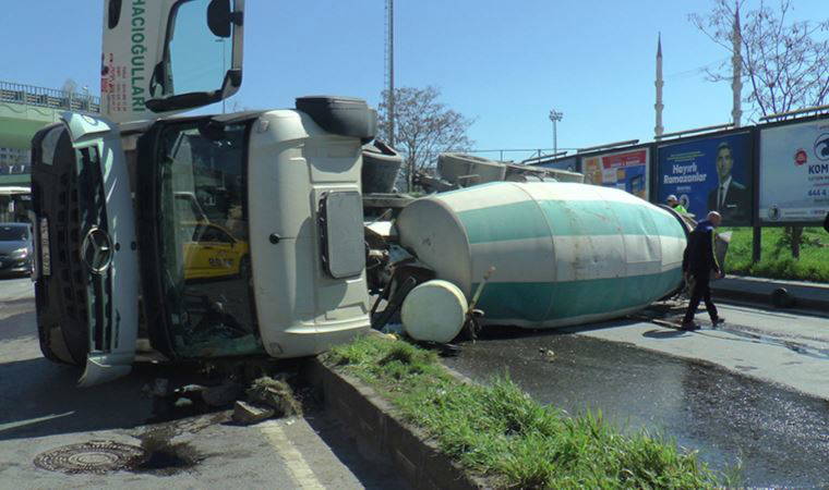 Kartal’da Cevizli Mahallesi Denizer Caddesi'nde Ramazan G. idaresindeki 34 DE 4879 plakalı beton mikseri, virajı alamayarak karşı istikamette park halindeki otomobile çarpıp yola devrildi.