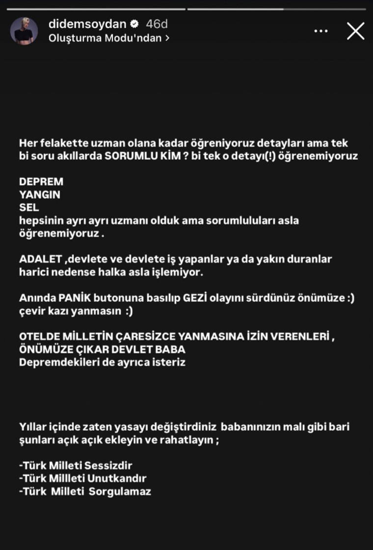 Ülkede peş peşe gelen olaylar üzerinde ünlü manken Didem Soydan sessizliğini bozdu.