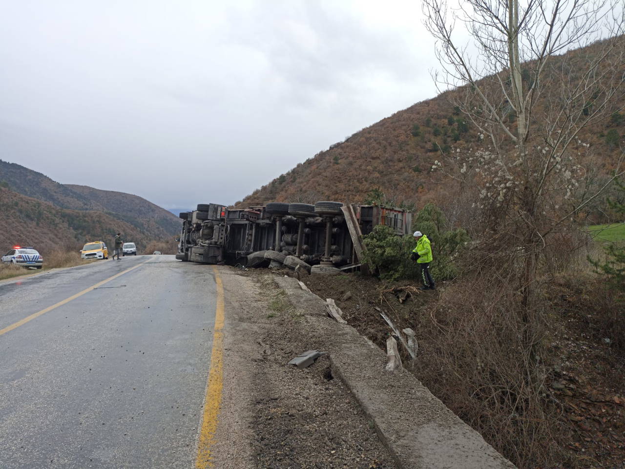 Feci kaza, saat 16.00 sıralarında Çorum-Kastamonu kara yolu Özboyu köyü yakınında meydana geldi. Abdulkadir Elkatmış yönetimindeki 41 AHD 943 plakalı çimento yüklü TIR, kontrolden çıkıp, bariyerlere çarparak devrildi.