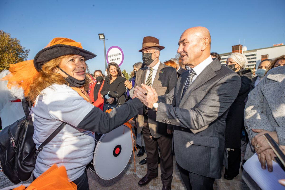 İzmir Büyükşehir Belediye Başkanı Tunç Soyer’in katılımıyla 25 Kasım Uluslararası Kadına Karşı Şiddetle Mücadele Günü'nde, yaşamını yitiren kadınlar anısına Konak Meydanı’nda metro çıkışındaki parkta “Turuncu Bahçe” ve bahçe içinde sergilenen “Kadın Anıtı”nın açılış töreni düzenlendi.