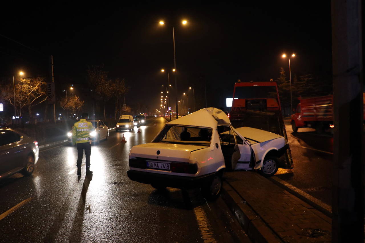 Suriye uyruklu M.A. idaresindeki 38 MA 7419 plakalı otomobil, sürücüsünün direksiyon hakimiyetini kaybetmesi sonucu refüjdeki aydınlatma direğine çarptı. Kazada, M.A., eşi ve 2 çocuğu yaralandı.