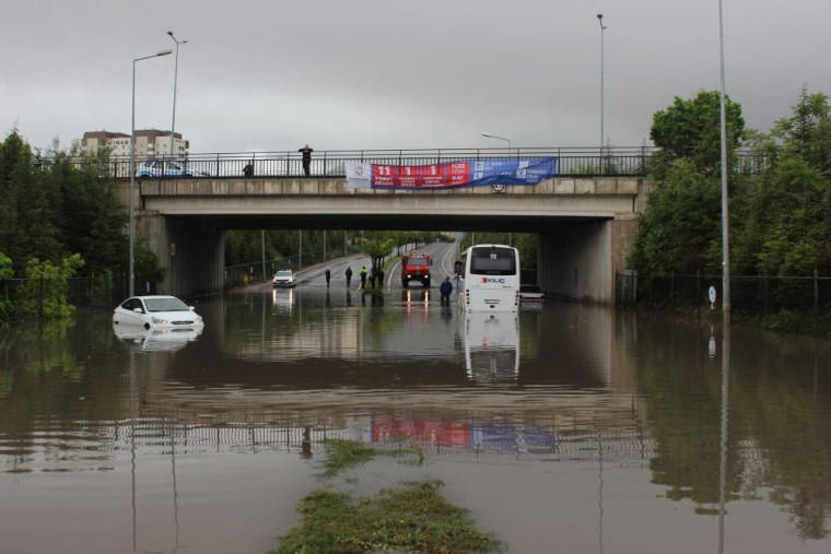 Polis, AFAD ve itfaiye ekipleri, mahsur kalan araç ve sürücüleri kurtararak güvenli bölgeye aldı.
