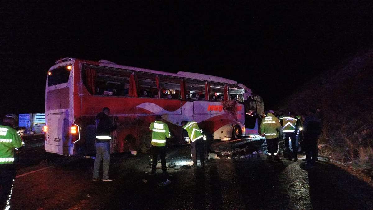 Sürücüsünün direksiyon hakimiyetini kaybeden otobüs karşı şeride geçip devrilerek, metrelerce sürüklendi. Can pazarının yaşandığı kazada, otobüste bulunan 38 kişi yaralandı.