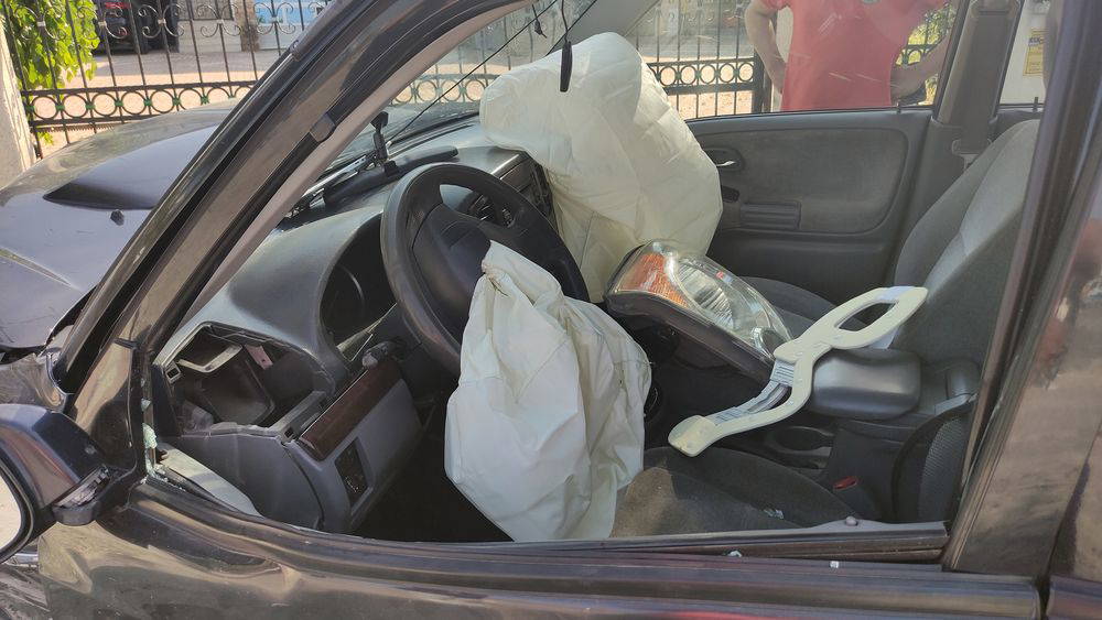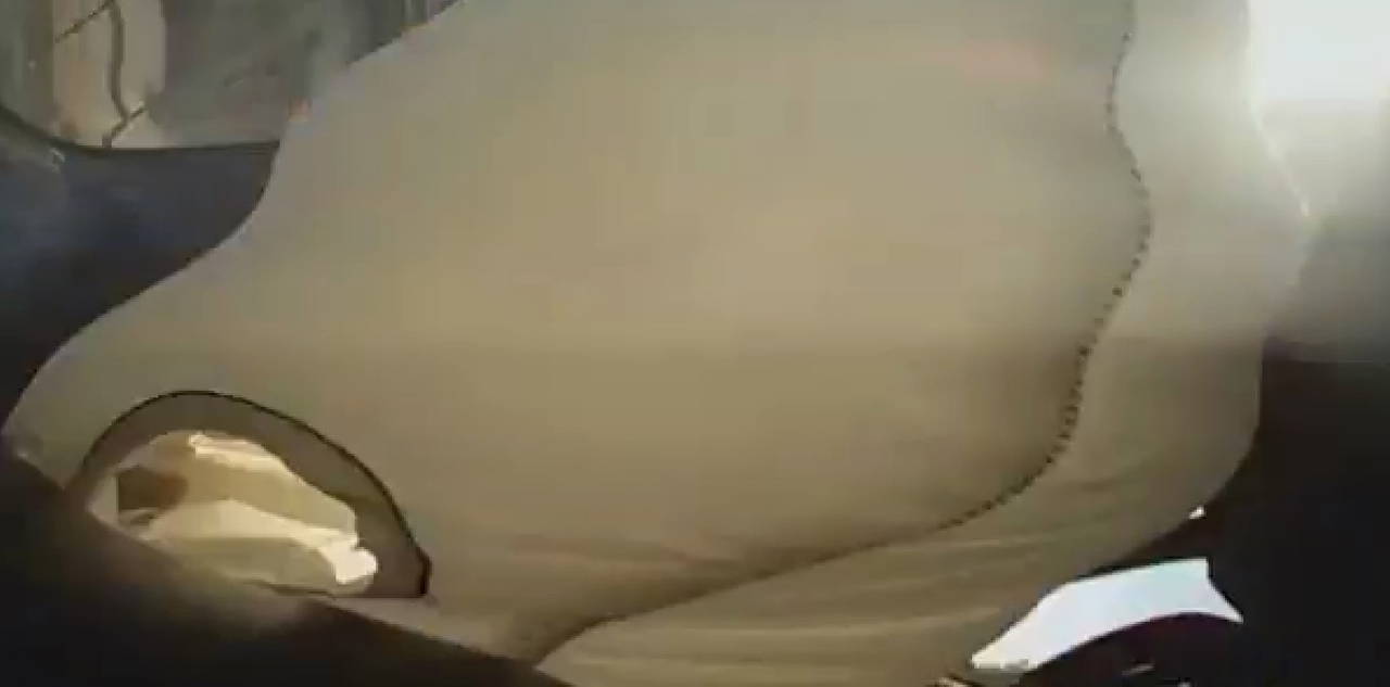 Çarpışmanın şiddetiyle hava yastıklarının açıldığı anlar, araç içi kamerasınca kaydedilirken, klakson sesi ile diğer otomobildeki yaralıların çığlıkları da duyuluyor.