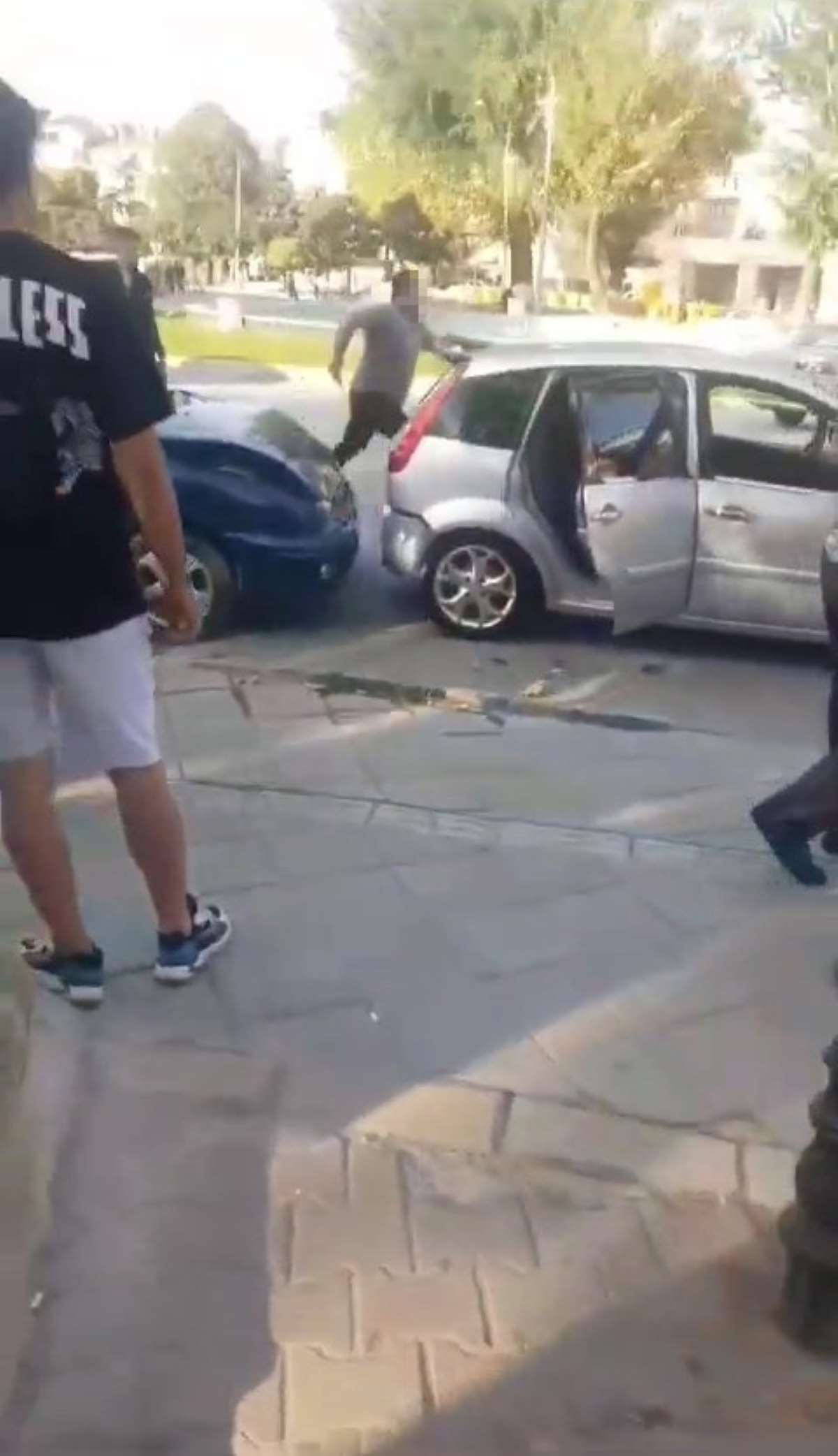 Sürücü Fatih M.(35) aracıyla önünde seyreden sürücüsü Abdulhalim S.(20) yönetimindeki otomobile arkadan çarptı. Kazanın ardından sinirlenen Abdulhalim S., kendisine çarpan sürücünün kapısını tekmeledi.