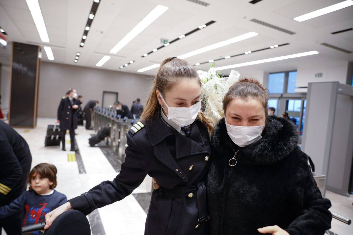 Kazakistan’dan gelen kızı THY pilotlarından İrem Poyraz’ın annesi Reyhan Poyraz, kızını karşılamaya geldi.