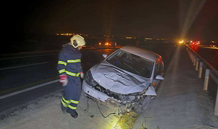 Erduran, kazaya sebebiyet vereceğini düşündüğü lastiği kaldırmaya çalışırken, sürücüsünün ismi öğrenilemeyen 33 BV 5512 plakalı otomobilin çarpmasıyla yaralandı.