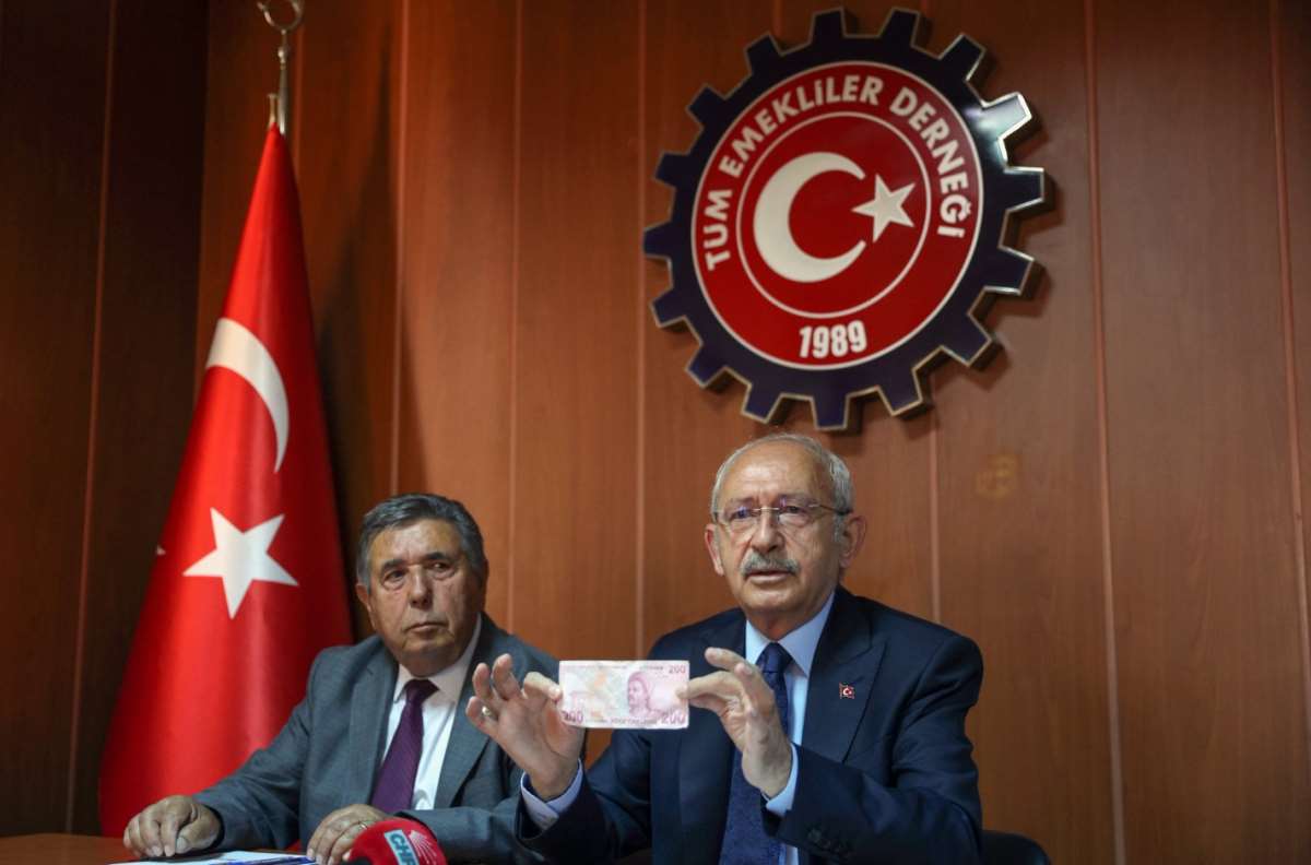 Kılıçdaroğlu, emeklilerin hakkının teslim edilmesi, emeklilerin de kendi haklarını savunması gerektiğini vurguladı. Cebindeki 200 lirayı çıkaran Kılıçdaroğlu, bu paraya şimdi 20 simit, 5 yıl önce ise çok şeyin alınabildiğini belirtti.