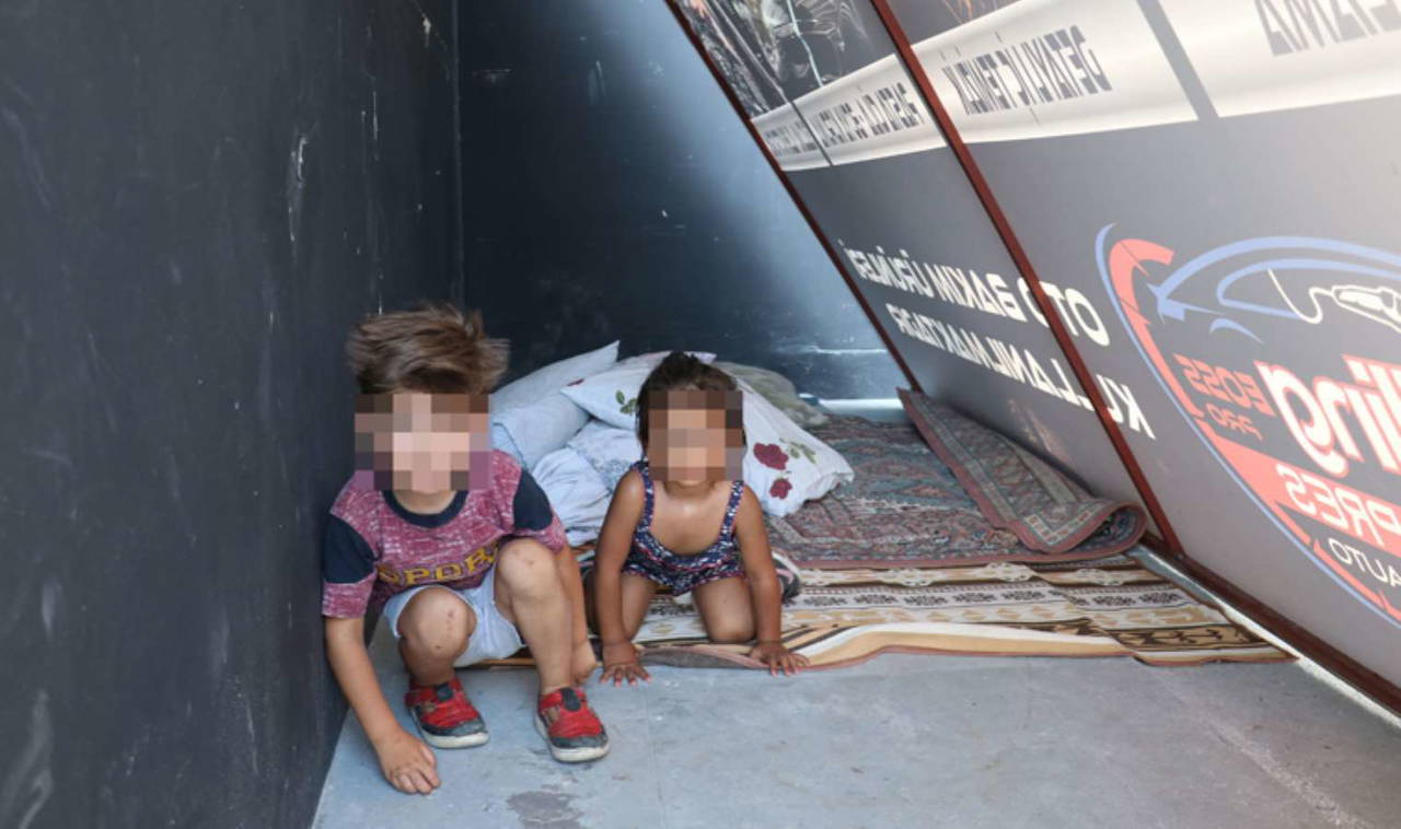 Muratpaşa ilçesi Şirinyalı Mahallesi'nde çalıştığı işyerinin tabelasının aralığına yatak atıp geceleri burada geçirdiklerini aktaran Samet Bozkaya, çocukları Elizan Naz (2) ile Rüzgar Umut'un (3), geceleri üşüdüğünü anlattı.