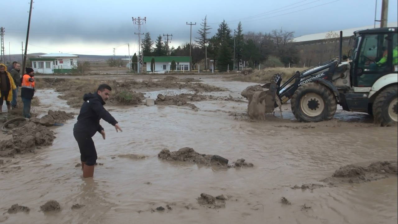 Kırıkkale'nin Balışeyh ilçesinde öğleden sonra etkili olan sağanak nedeniyle yol suyla doldu, sürücüler ve yayalar zor anlar yaşadı.