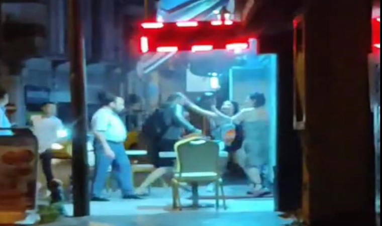 Kız arkadaşının 2 kadın tarafından sıkıştırıldığını gören erkek, kadınlara yumruk salladı, tekme attı, sandalye fırlattı.