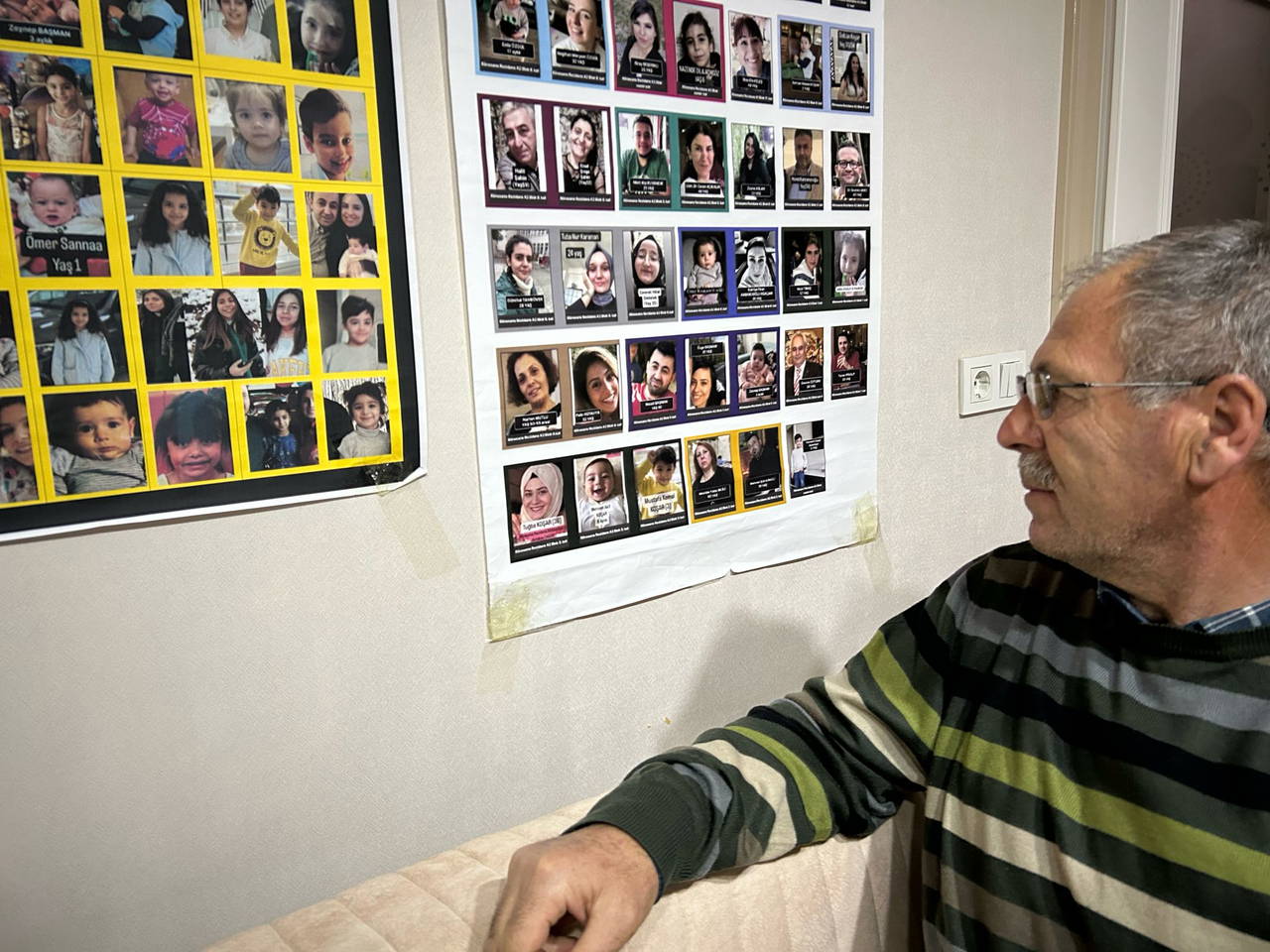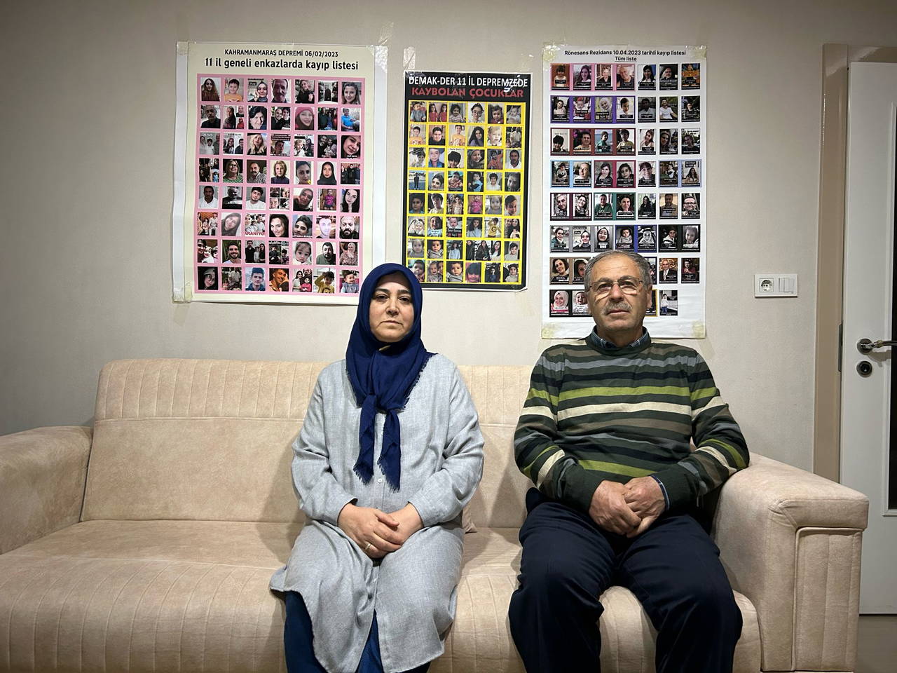 Evlerinin duvarlarında kayıp kişilerin fotoğraflarının yer aldığı afişler de bulunan Suna Öztürk ile Ahmet Karaman, 1 yıldır kızları ile torunlarını arıyor.