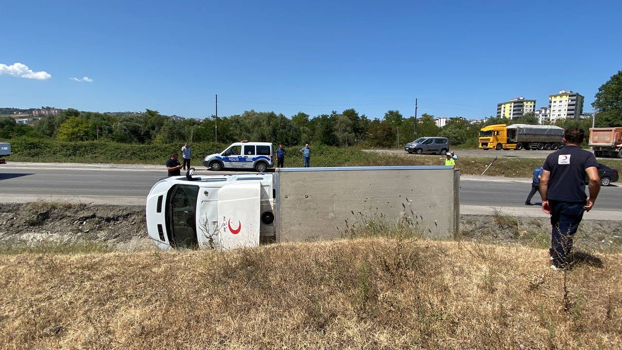 İlkadım ilçesi Derebahçe Mahallesi Gazi Köprüsü'ne bağlı yan yolda; Selçuk Çankaya'nın kontrolünü yitirdiği 06 FU 1375 plakalı Kızılay kan toplama aracı, yan yattı. Kazada, sürücü Çankaya yaralandı.