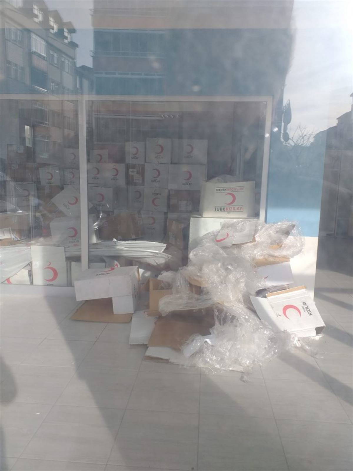Yurttaşlar tarafından Kızılay’a deprem bölgesine gönderilmesi için bağışlanan yeni kıyafetler, kaçak yurdun depolarında çürümeye terkedilmiş durumda bekletiliyor. Kızılay’a ait yardım kolilerinin düzensiz bir şekilde açılarak kıyafetlerin yerlere saçıldığı gözleniyor.