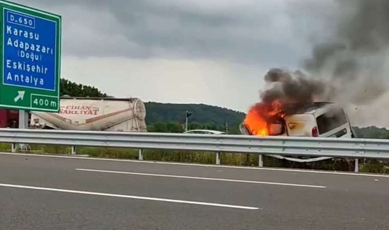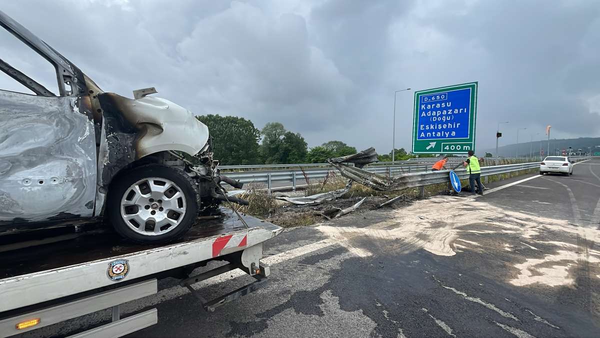 Kuzey Marmara Otoyolu Adapazarı ilçesi Çelebiler Mahallesi mevki İstanbul İstikametinde meydana gelen kazada, Ö.F.D. idaresindeki 06 FS 3305 plakalı Fiat marka hafif ticari araç, sürücüsünün direksiyon hakimiyetini kaybetmesi neticesinde orta bariyerlere çarptıktan sonra alev aldı.