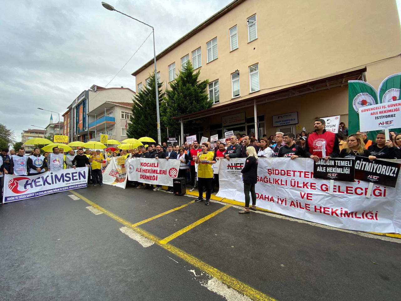 Fatih Aile Sağlığı Merkezi protesto amaçlı kapatılırken, merkez önünde toplanan aile hekimleri basın açıklaması yaptı. Basın açıklamasına, Aile Hekimleri Dernekleri Federasyonu, Kocaeli Tabip Odası, CHP Kocaeli Milletvekili Mühip Kanko da katıldı.