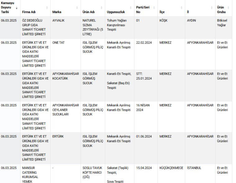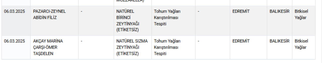 Taklit-tağşiş-1 ( Ürünlere aynı değeri taşımayan başka bir maddenin, o madde yerine aynı maddeymiş gibi katılması) listesine 26, Taklit veya Tağşiş-2 (Ürünlere temel özelliğini veren öğelerin ve besin değerlerinin tamamının veya bir bölümünün mevzuata aykırı olarak çıkarılması) listesine 9 yeni ürün daha eklendi. Böylelikle ürün sayısı toplam 1346'ya yükseldi.
