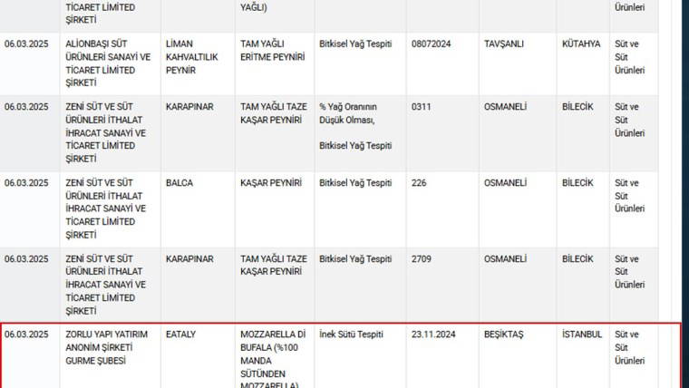 İtalyan mutfağı olarak hizmet veren restoranda taklit gıda tespit edildi. Yüzde 100 manda sütü kullanıldığı ifade edilen mozarella peynirinin inek sütü içerdiği ortaya çıktı.