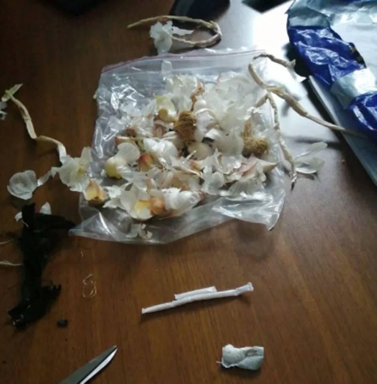 Kargo paketinde arama yapan ekipler, bir pantolonun kemer kısmının iç bölümüne dikilerek gizlenmiş şekilde pipet içinde 1,51 gram ve taşınabilir şarj aleti içine yerleştirilmiş şekilde sarımsağa sarılı halde 0,69 gram olmak üzere toplamda 2,2 gram metamfetamin ele geçirildi.