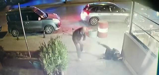 Tartışma restoran çıkışında kavgaya dönüştü. O anlar ise güvenlik kameralarına yansıdı. Kamera görüntülerinde ise D. Ö. yürürken arkasından koşarak gelen Y. Ç. kadına önce tekme atıyor, daha sonra tutup yere fırlatıyor.