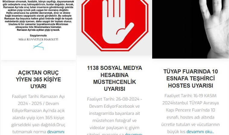 Grubun, insanların giyim kuşamından, konuşmalarında kullandığı yabancı kökenli kelimelere kadar birçok alanda yaptıkları kanunsuz ve insanların özgürlüğünü kısıtlayan faaliyetleri aleni bir şekilde yürütmesi ve bunları web sitelerinden duyurmaları ise dikkat çekti.