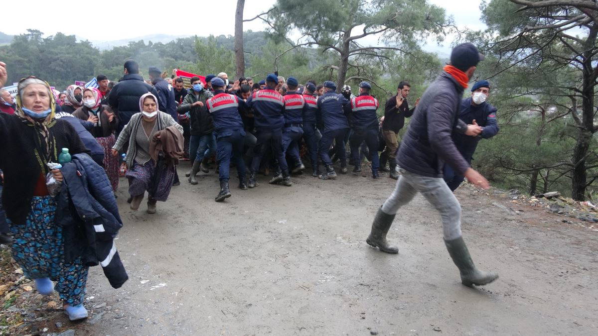Jandarmanın engellemi üzerine gerginlik yaşandı. Yöre halkı ve çevrecilerden oluşan eylemciler jandarma barikatını aşarak çalışmalara engel olmak için iş makinelerine doğru koşmaya başladı. Kalabalığa engel olmak isteyen jandarmalardan bazılarının üniformaları, yaşanan arbede sırasında yırtıldı. Öfkeli kalabalık etüd alanı girişindeki bir traktör kepçenin lastiklerini kesti.