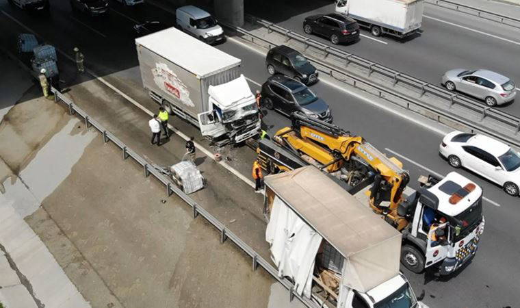 İstanbul Küçükçekmece'de seyir halindeki kamyon, emniyet şeridinde duran içinde kimyasal madde bulunan bidonları taşıyan kamyona çarptı. Çarpışmanın etkisiyle kimyasal madde taşıyan kamyon metrelerce sürüklenirken, yüzlerce litre madde ise otoyola döküldü.
