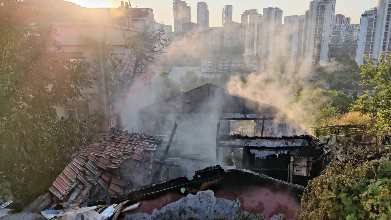 Yangın, itfaiye ekiplerinin yarım saatlik çalışması sonucu kontrol altına alınırken, gecekondu kullanılmaz hale geldi.