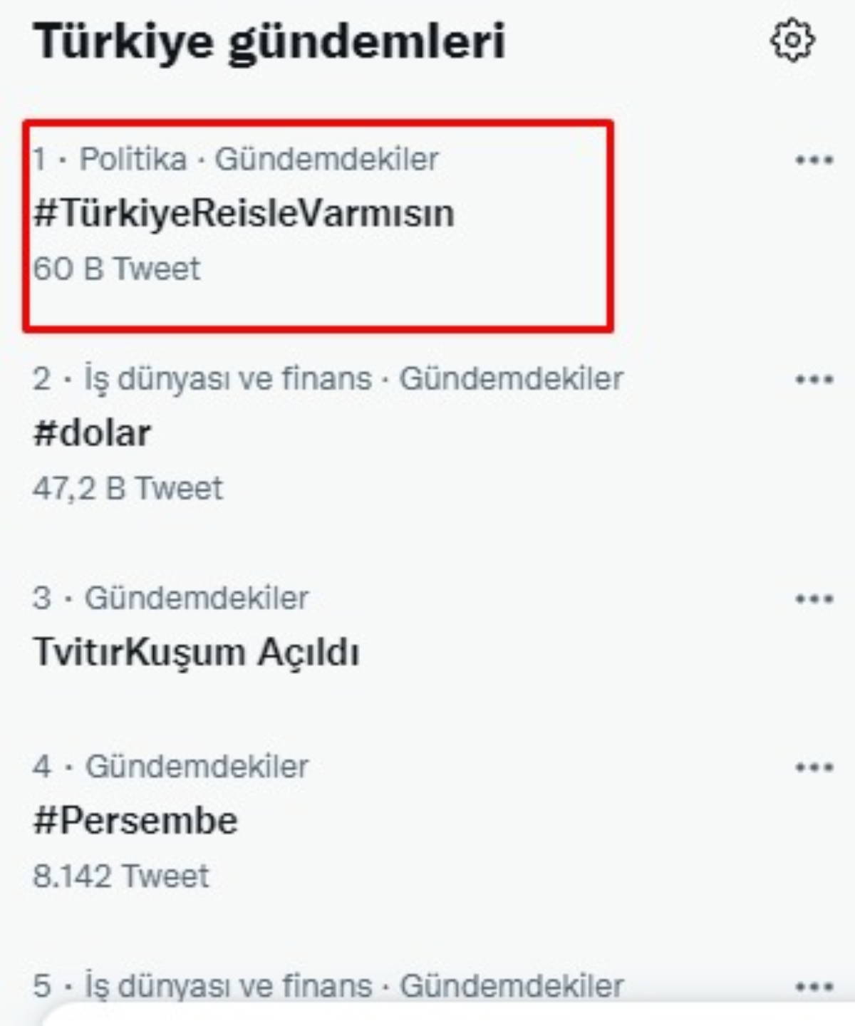 'Türkiye Reisle Var Mısın' şeklinde açılan etikette paylaşım yapan troller Erdoğan için oy istedi.