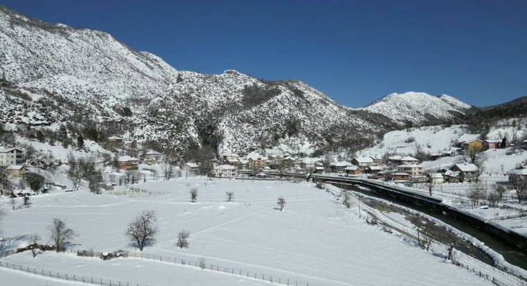 Milli parkın eteklerinde bulunan beyaz örtüyle kaplanan Drahna Vadisi’ndeki Ulukaya, Alıçlı, Çıraklar, Köklü, Çamdibi, Kozanlı, Aşağıdere, Yukarıdere köyleri ve eşsiz güzellikteki dağlar havadan dronla görüntülendi.