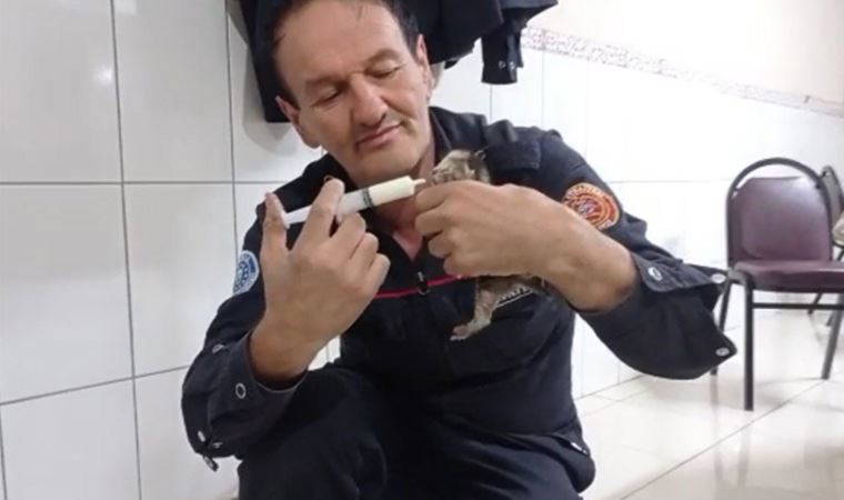 İtfaiye erleri, burada kedileri süt dolu enjektörlerle besledi. 3 kedi, daha sonra İnegöl Belediyesi Sahipsiz Hayvan Bakım ve Tedavi Merkezi ekiplerine teslim edildi.