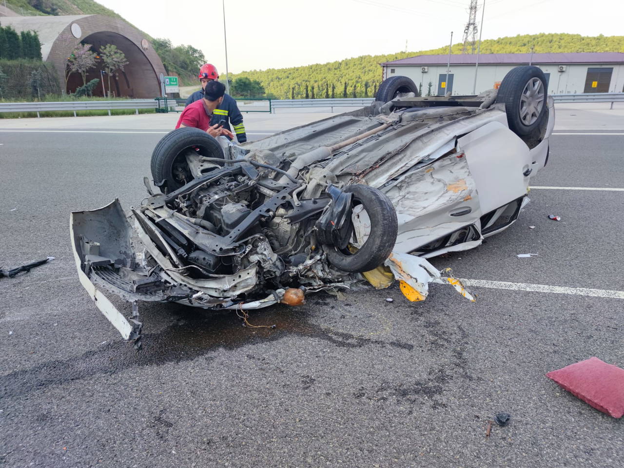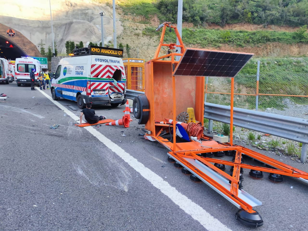 Kaza, saat 07.00 sıralarında, Kuzey Marmara Otoyolu İstanbul yönü T2 ve T3 tünelleri arasında meydana geldi. M.E.'nin kullandığı otomobil, yol bakım çalışması yapan otoyol görevlilerine ait, emniyet şeridinde bulunan, arkasında römork bağlı minibüse çarpıp takla attı.