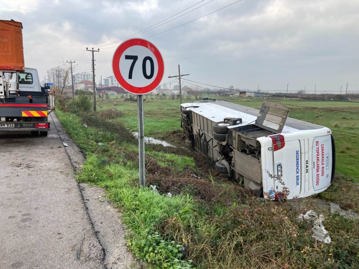 Biga ilçesinden Çanakkale’ye seyir halinde olan İÇDAŞ işçilerini taşıyan 17 KD 006 plakalı otobüs Çardak Beldesi yakınlarında nedeni henüz belli olmayan bir şekilde yoldan çıkarak şarampole yuvarlandı.