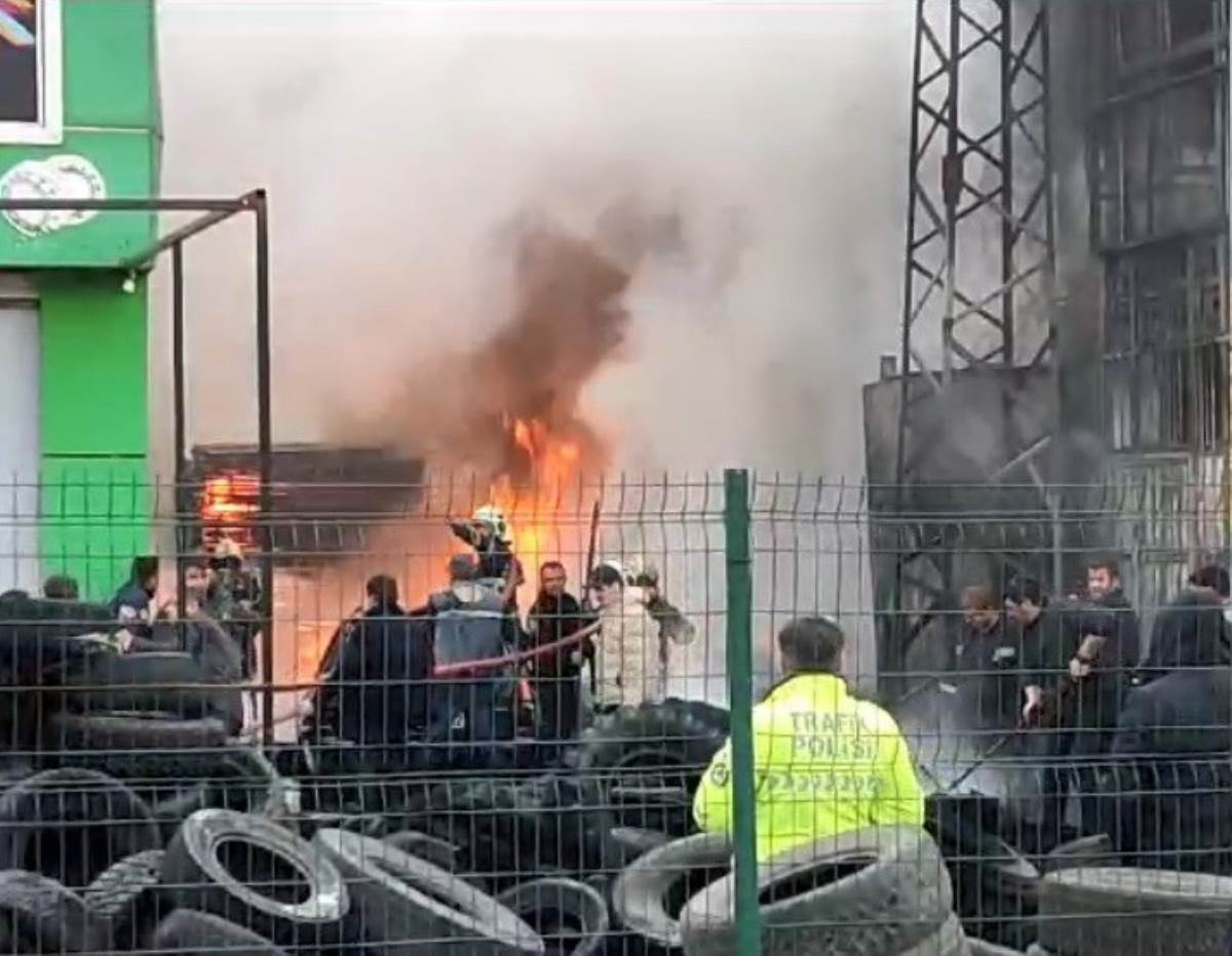 Samsun'un Tekkeköy ilçesinde çıkma lastiklerin depolandığı işyerinde henüz bilinmeyen nedenle yangın çıktı.
