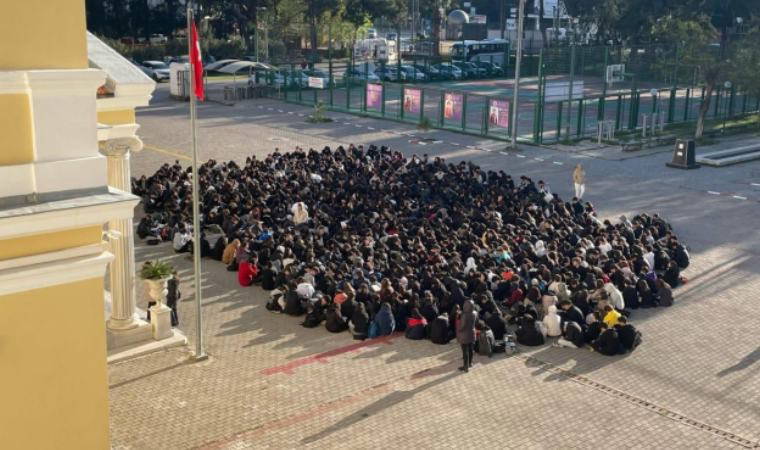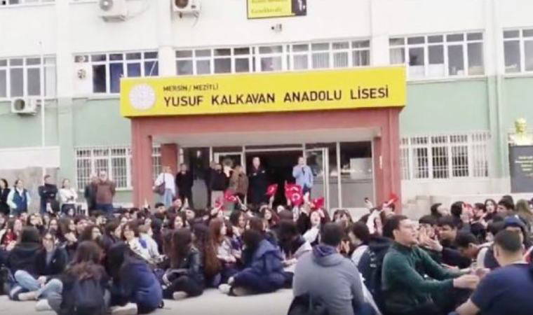 Mersin Yusuf Kalkavan Anadolu Lisesinde öğrenciler, tayini çıkan öğretmenlerine destek için okul bahçesinde toplandı. Öğrenciler, hocalarının isimlerini tek tek okuyarak alkışlarla tepki gösterdi.