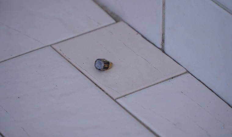 Dün sabah çamaşır asmak için çıktığı balkonda yerde plastik parçaları gören Öksüz, 2,5 yaşındaki kızının elinde de mermi çekirdeği bulması sonrası korku ve panik yaşadı.