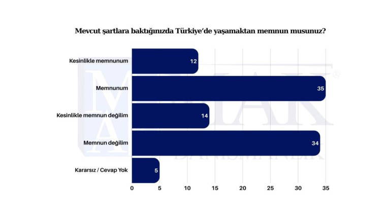 "Mevcut şartlara baktığınızda Türkiye'de yaşamaktan memnun musunuz?" sorusuna verilen yanıtlar da şöyle: