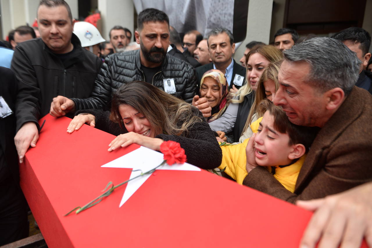 Törende Samet Güdük'ün babası İsmail Güdük, annesi Aysel Güdük, eşi Duygu Güdük, kardeşi Mehmet Güdük ile oğlu Demir Güdük (9) tabutuna sarılıp, gözyaşı döktü. Aileyi belediye çalışanları teselli etmeye çalıştı.