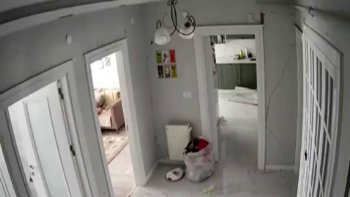 Bir cami ile bir evin güvenlik kamerasında depremle gelen çatırdama sesleri dikkat çekti.