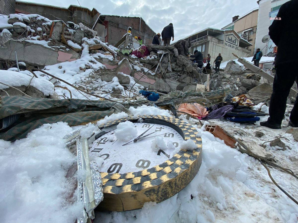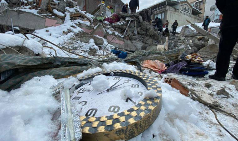 Malatya’nın İnönü Caddesi Aslanbey Mahallesi’nde bulunan Ellinci Yıl Apartmanı’nda kurtarma çalışmaları devam ederken enkaz altında, saat 04.17’de durmuş olan bir duvar saati görüntülere yansıdı.