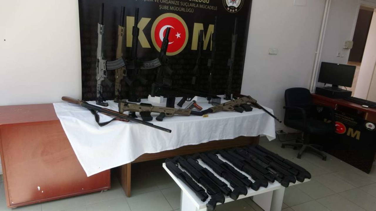 Operasyonda kent dışından kargo ile gönderilen 13’ü otomatik 23 tüfek ile 1 adet tabanca, 620 bin gümrük kaçağı makaron, 60 bin dal doldurulmuş gümrük kaçağı makaron, 2 sigara dolum makinesi, 2 adet kompresör, 40 kilo bandrolsüz tütün ele geçirilirken, 5 zanlı ise gözaltına alındı.
