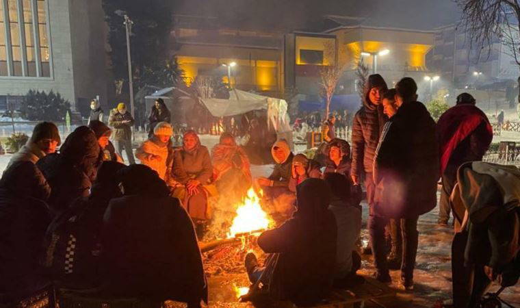 Hava durumunun eksi 2 olduğu Malatya'nın Battalgazi ilçesinde de yurttaşlar, dışarıda yaktıkları ateş etrafında ısınmaya çalışıyor.