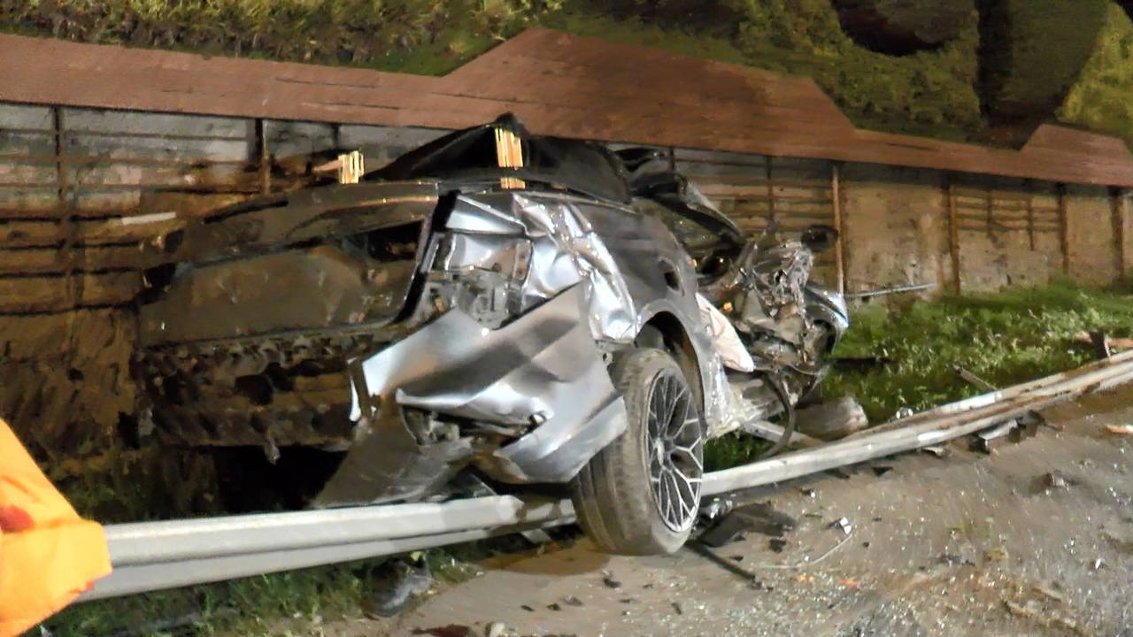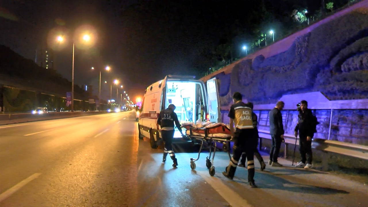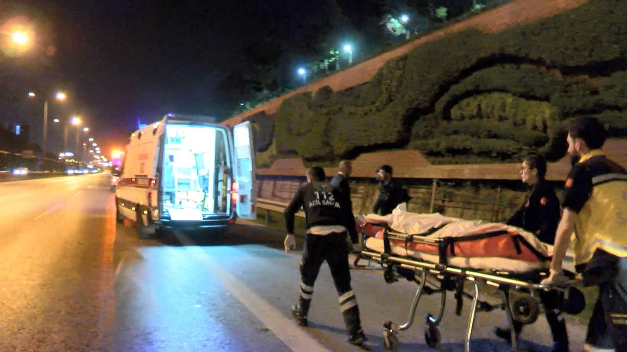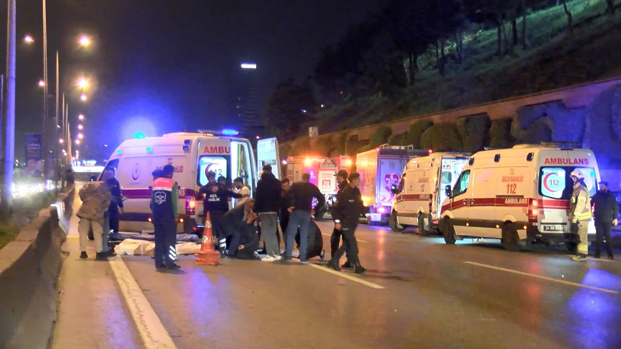 Yolu kapatmak için konulan dubaları ve bariyerleri aşarak yolda bakım ve onarım yapan işçilere çarpan otomobil ortalığı savaş alanına çevirdi.