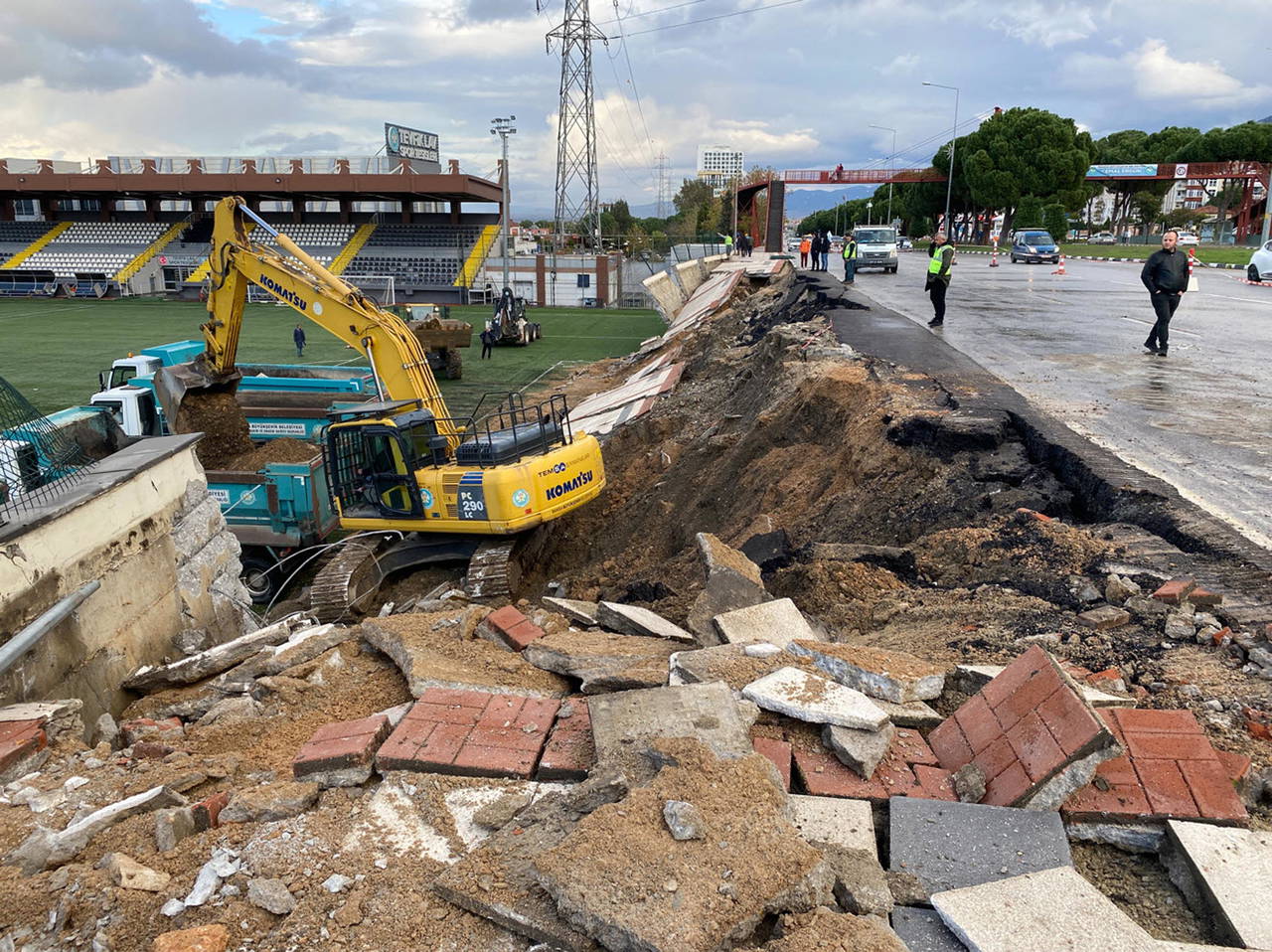 Yağışlarla birlikte Yunusemre ilçesinde bulunan Tevfik Lav Spor Tesisleri’nin İzmir-İstanbul otoyolu kısmındaki istinat duvarı çöktü. Öte yandan duvarla birlikte otoyoldaki yaya yolu da çökerken yaşanan olayda şans eseri yaralanan olmadı.