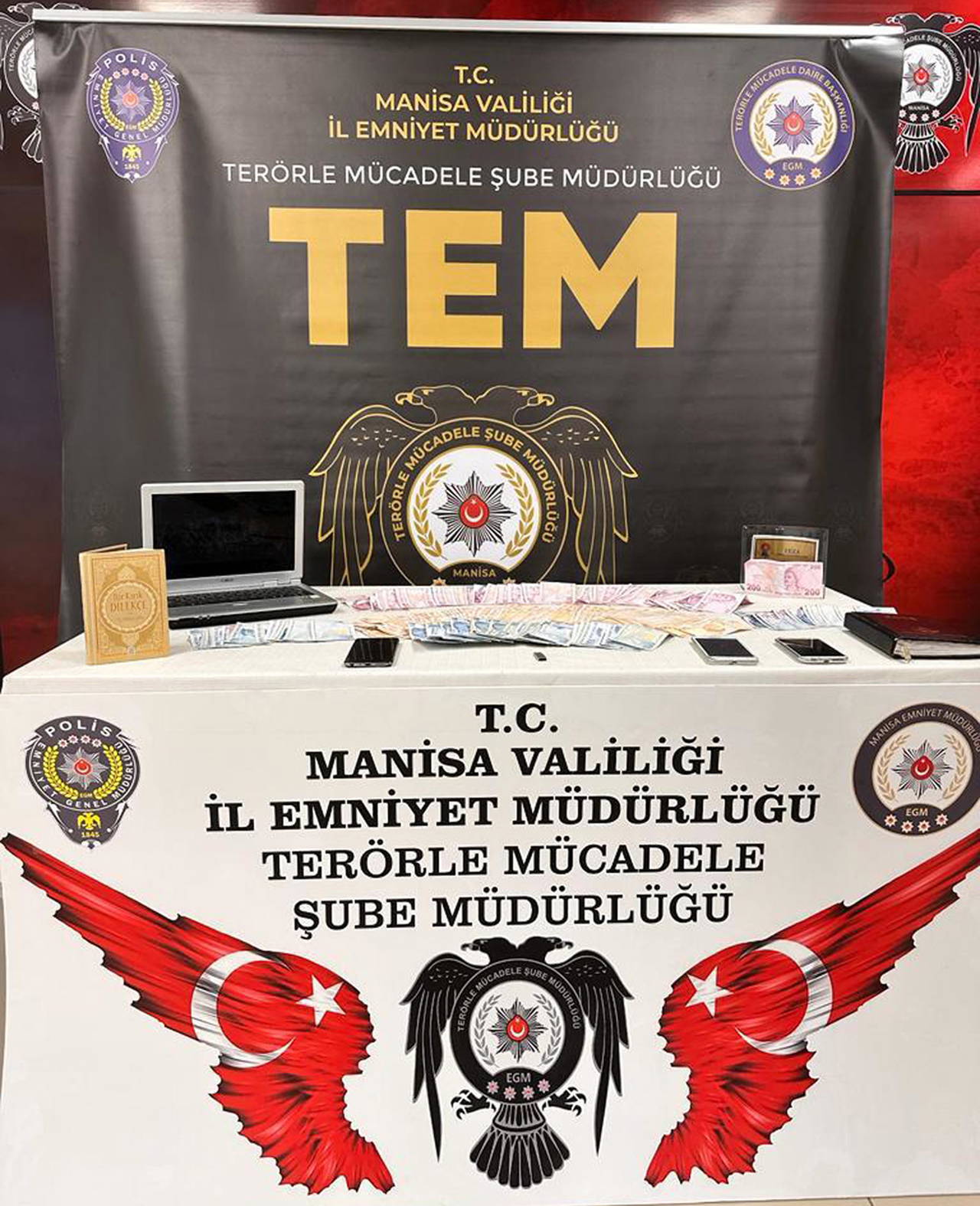 Yapılan aramalarda ele geçirilen cep telefonu, bilgisayar ve bir miktar nakit paraya el konuldu.